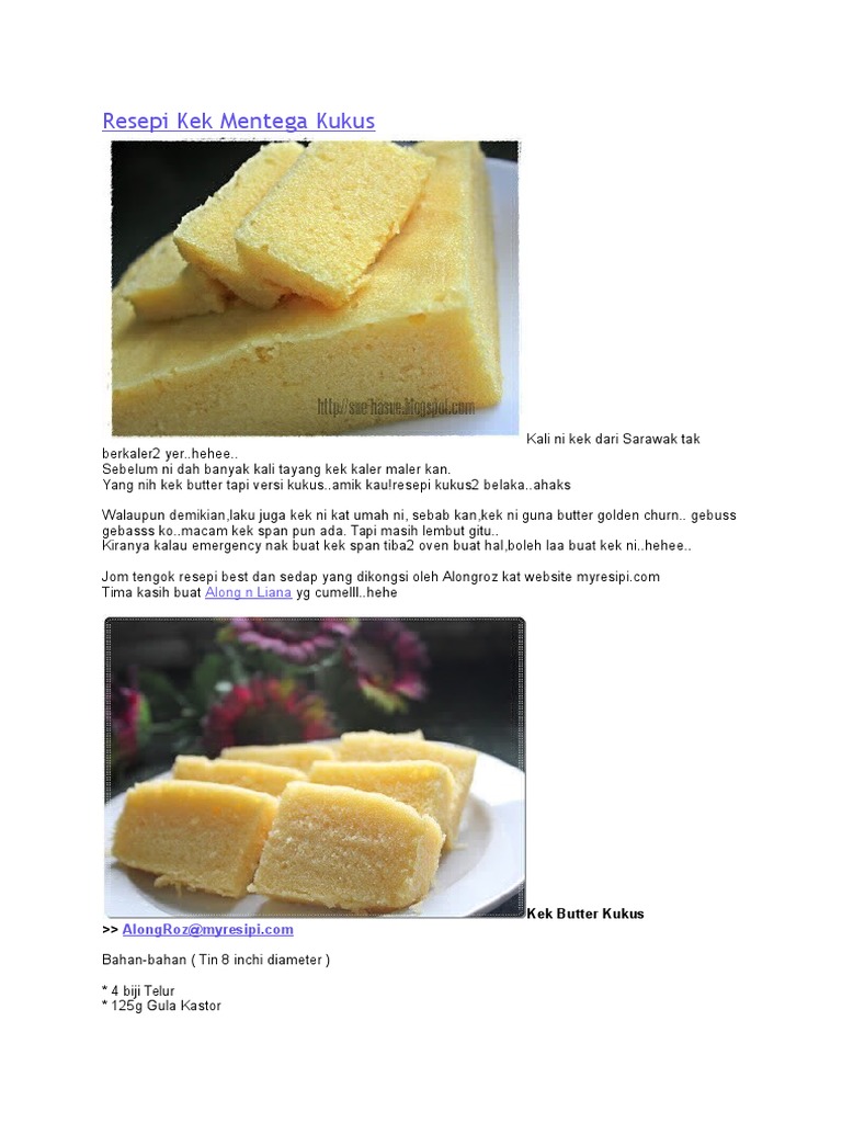 Related : Resepi Kek Butter : Anda dapat menjalankan bisnes kek butter, kek lapis dan swiss roll, secara sambilan..